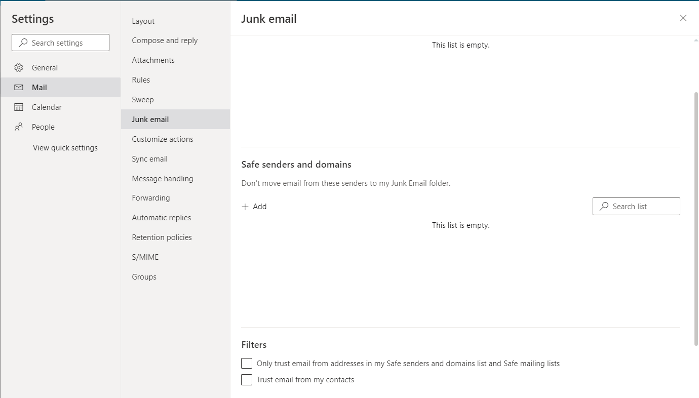 Check that the sender is not in your Blocked senders list. If they are, select the delete icon next to their name and add the sender to your Safe senders list instead.