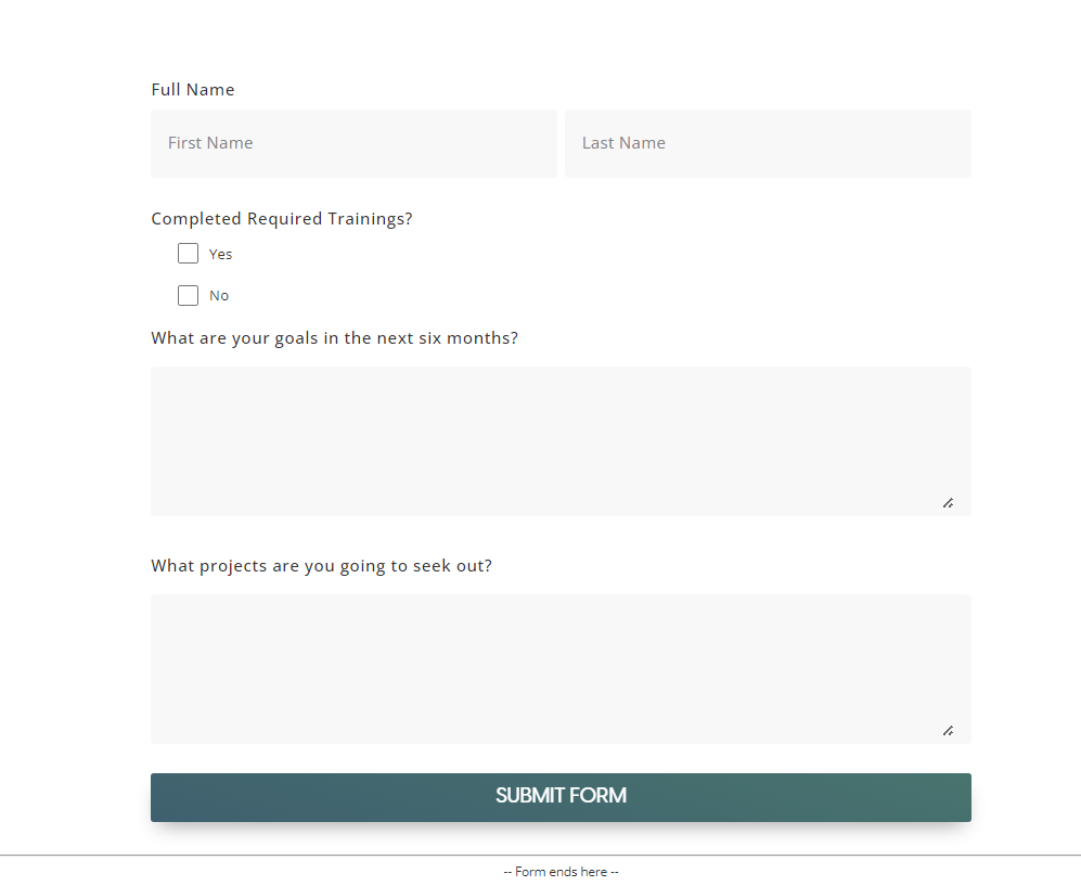 When a user’s task in the Review Process is a Form, user will input details on the form and submit it to complete the task.