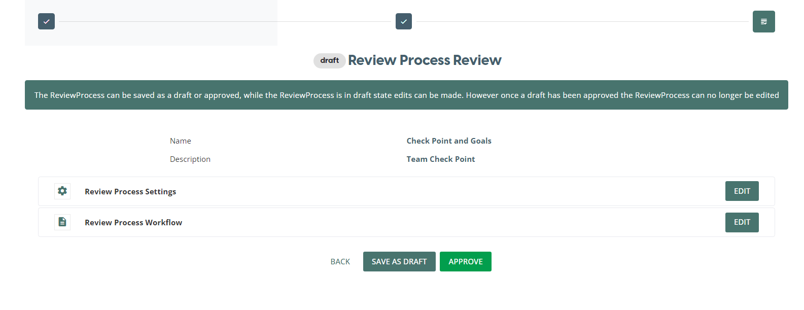 Once a Review Process has been published, it cannot be edited.