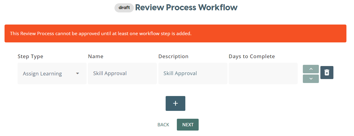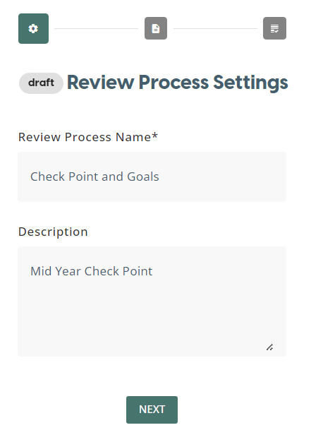 Review Process can be created from a set of Review Step Types which include: Forms, Meeting, Skill Approval, Learning Assignment.