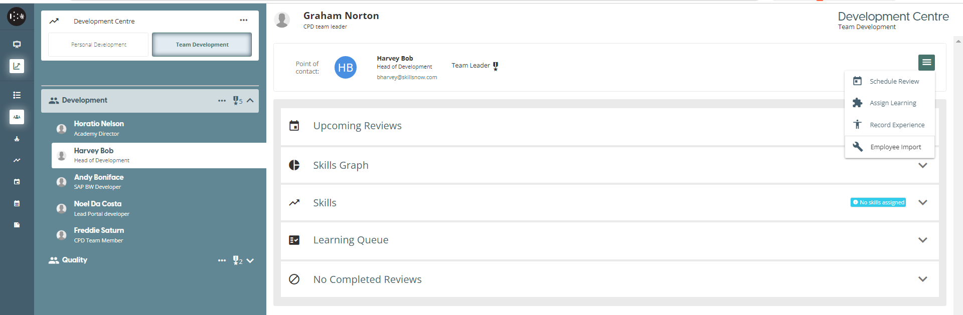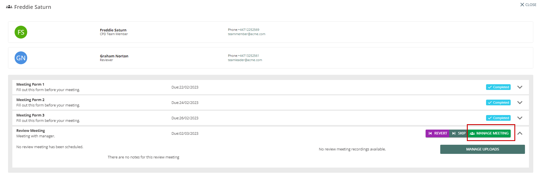 The Team Leader can also access the imported data and user details during Review Meetings.