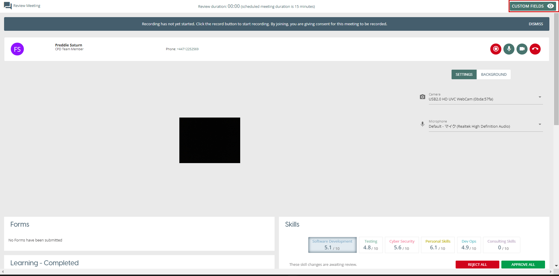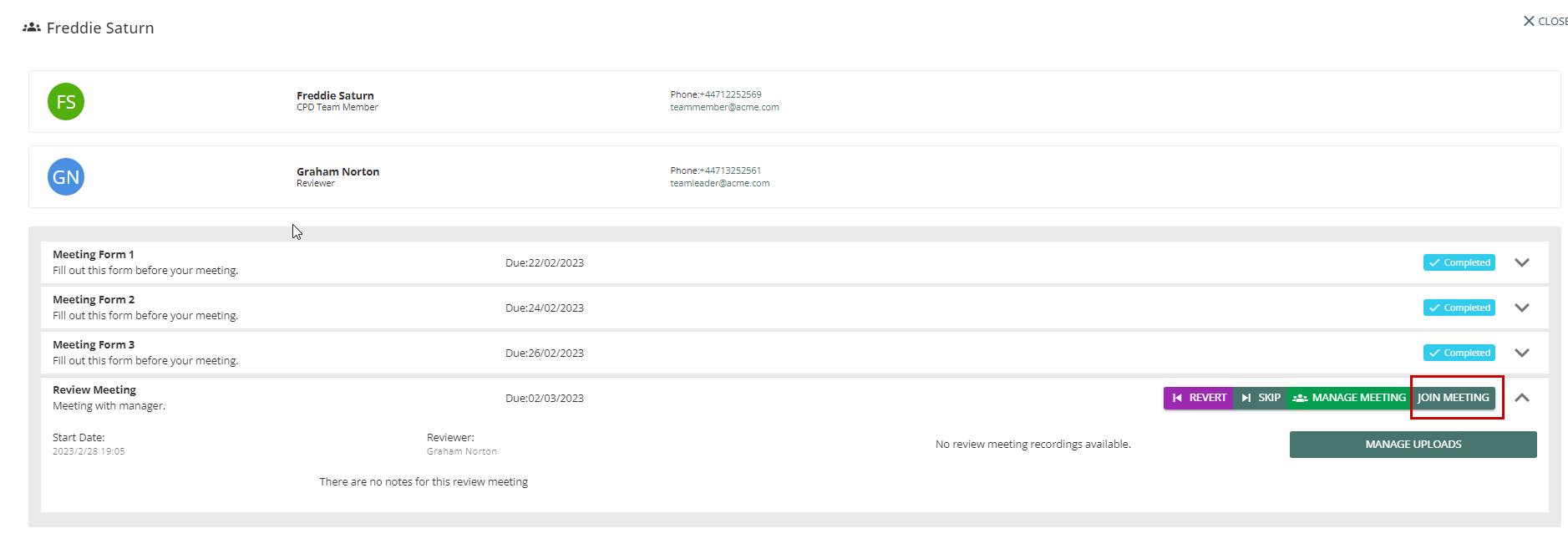 Team Leader will be directed to the Review Meeting Screen.
