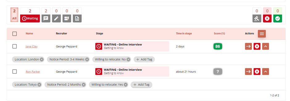 From here the recruitment admin can approve or reject items using the buttons in the ‘Actions’ column.