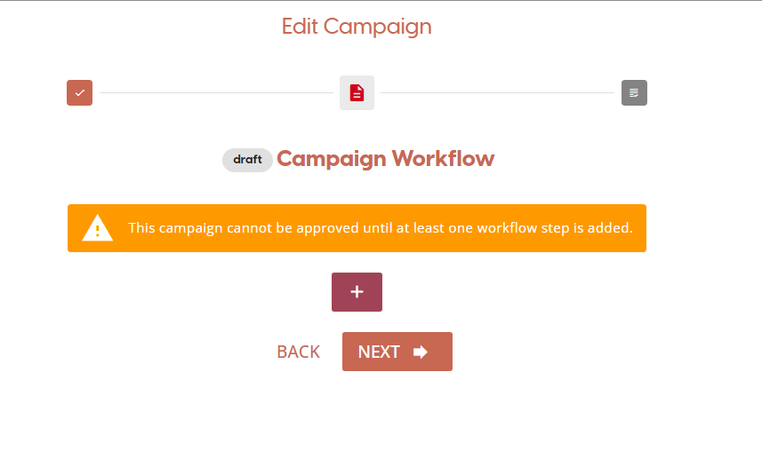 ⚠️ Campaign Workflow steps cannot be edited: Once you approve a campaign, the campaign workflow steps cannot be added, removed or modified. Review the workflow steps before approving the campaign.