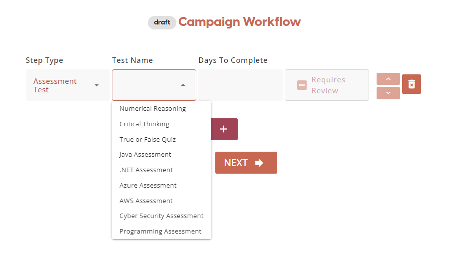The assessment test will now be available to be selected on the Campaign Workflow page in the Campaign Builder.