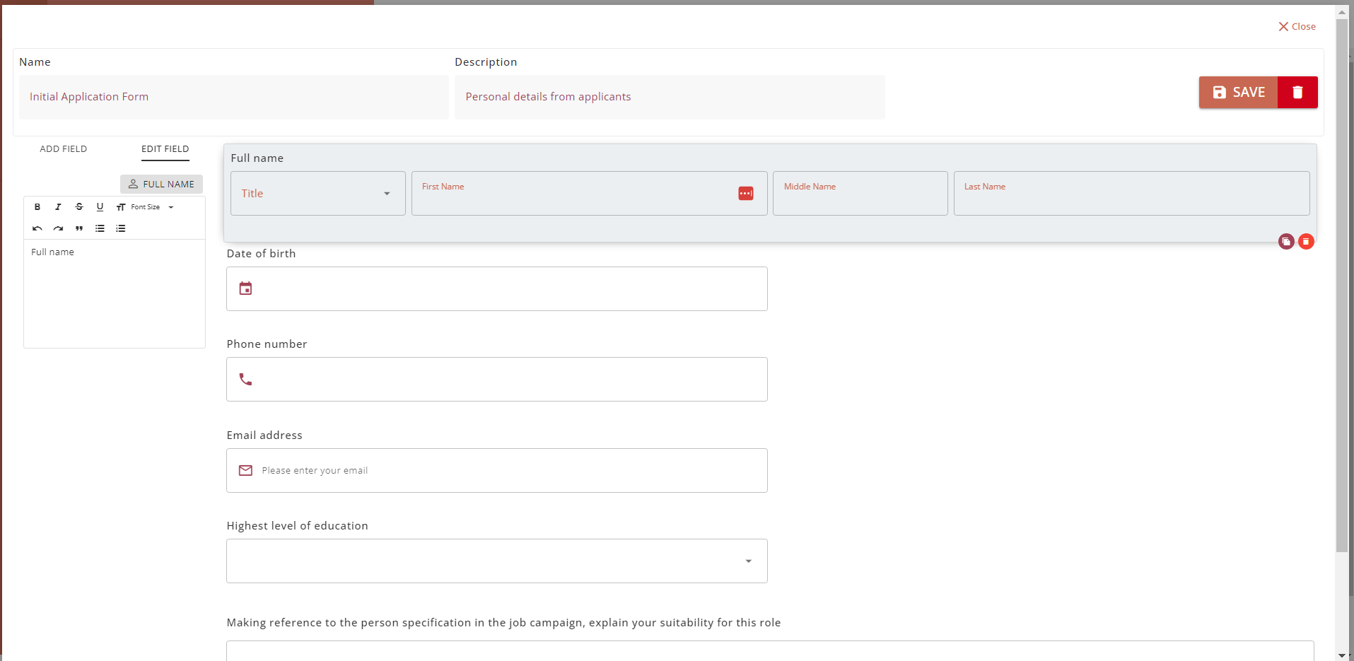 Once you have finished creating your form, click on the ‘SAVE’ button and the application form will be ready for selection in the Campaign Workflow builder page.