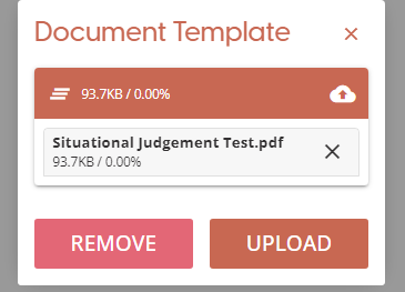 Press ‘UPLOAD’ to upload the document to the workflow step. The applicant will be able to see the document available to download onto their own device to complete. Once they have completed it, they have the option to upload the document back onto the platform for the recruiter to review their answers.