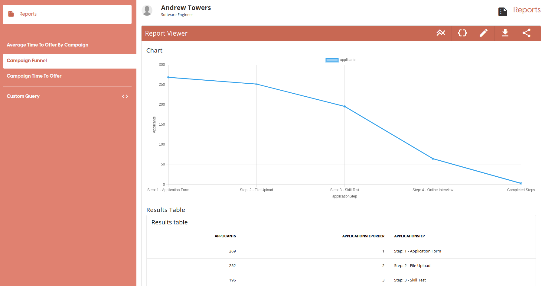 This report shows the number of applicants that have reached each stage of a campaign.