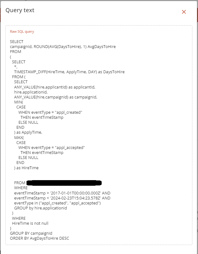 This report displays the hire dates of the applicants on a campaign, showing how long it took each campaign to reach its target number of hires.