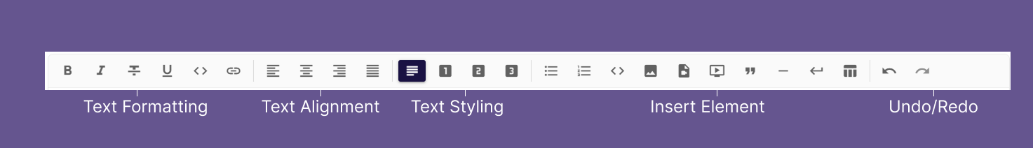 - Text Formatting : This allows you select various text formatting options such as Bold, Italic or Inline Code