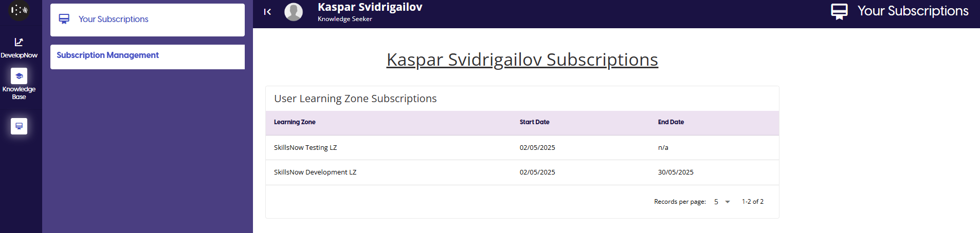As a Knowledge Seeker, I am able to view all of my subscriptions so I can ensure that I have the right access to the right Learning Zones.
